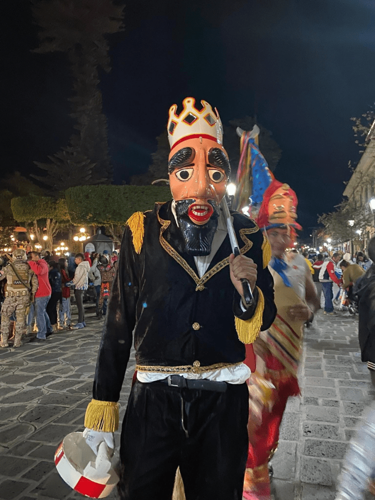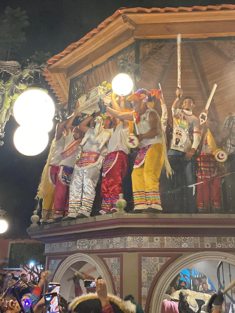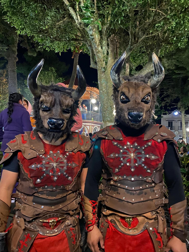 Pasado el tiempo se incluyeron también nuevos sincretismos a la danza: los negros empezaron a vestir máscaras de madera con forma de animales de origen africano como el elefante, el tigre, el búfalo o el jaguar, que se ponían junto con los ropones también conocidos como “dominó”, trajes que se siguen viendo en regiones aledañas como Almolonga. En la actualidad ya no son sólo negros los que participan en la danza en este sentido, sino que también los propios habitantes mestizos de Naolinco han empezado a hacerlo, agregando máscaras de calaveras, vampiros, piratas, apaches y personajes de ciencia ficción, las cuales son elaboradas por artesanos naolinqueños que, año con año, buscan retarse a sí mismos creando máscaras sumamente elaboradas, tardándose entre 4 días a 8 meses dependiendo la dificultad. Todas las máscaras elaboradas son de madera y son acompañadas con una vestimenta que hace alusión a un carnaval con disfraces completamente diferentes y con sus propios ciclos de moda y tendencia.